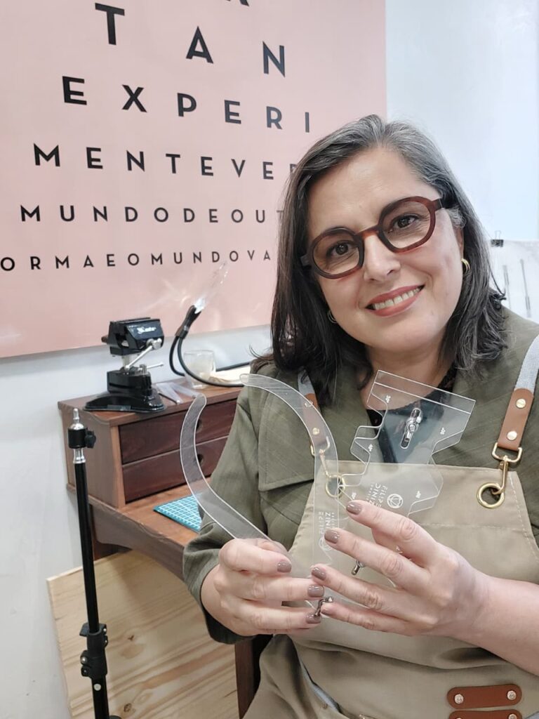 Assim, a curiosidade e o desejo de evoluir na carreira de Lunetier a levaram ao universo do acetato, através de cursos e especializações.
